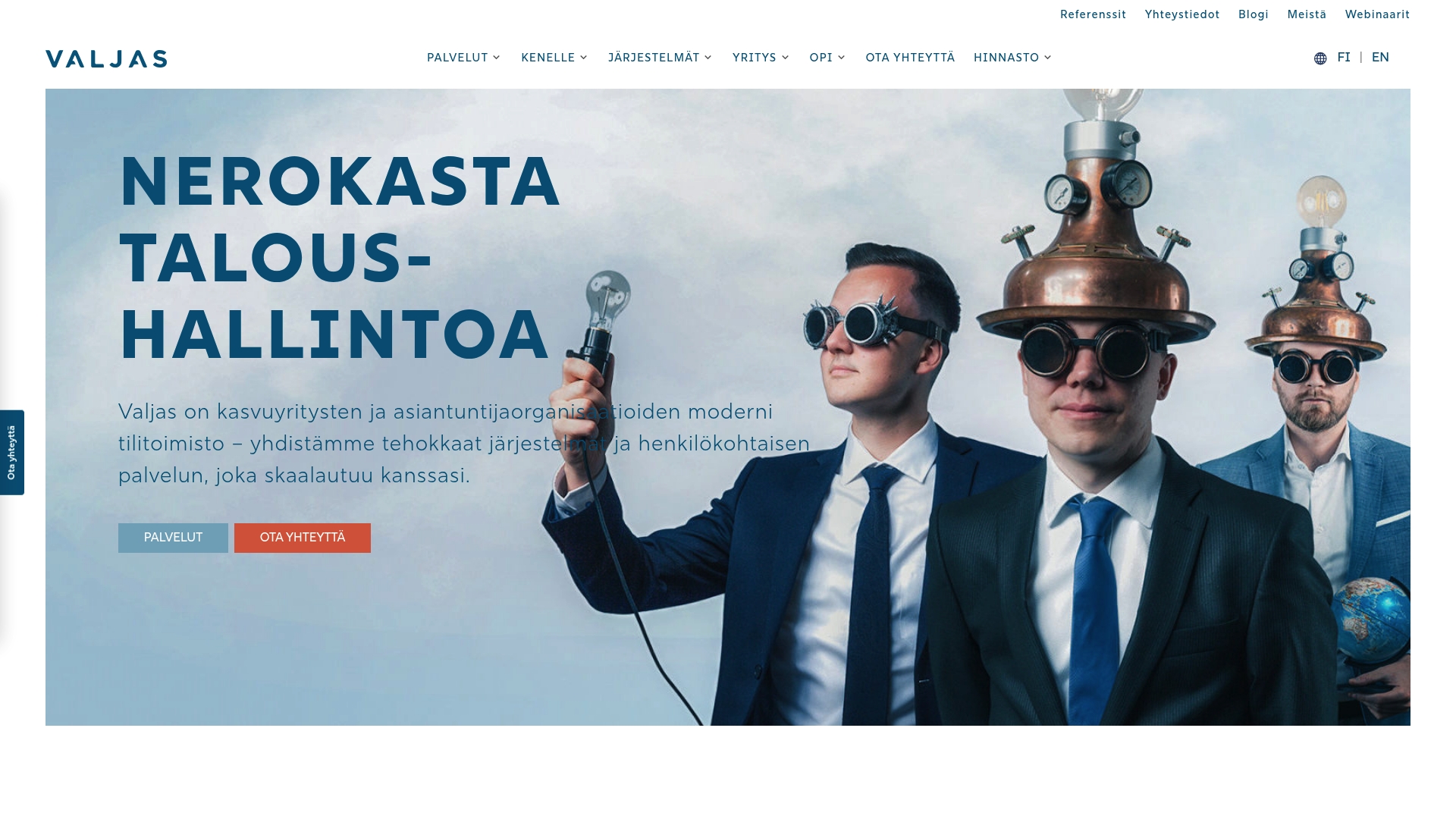 Valjas provides bookkeeping, payroll, CFO services and a virtual finance manager, all delivered with a focus on digital processes. The firm integrates leading platforms such as Netvisor, Procountor and Netsuite and offers tailored solutions for SaaS companies, game studios and marketing agencies.